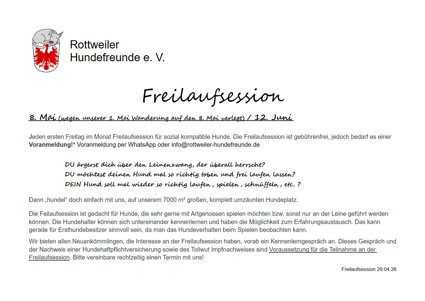 12. Juni Freilaufsession – nur mit Anmeldung