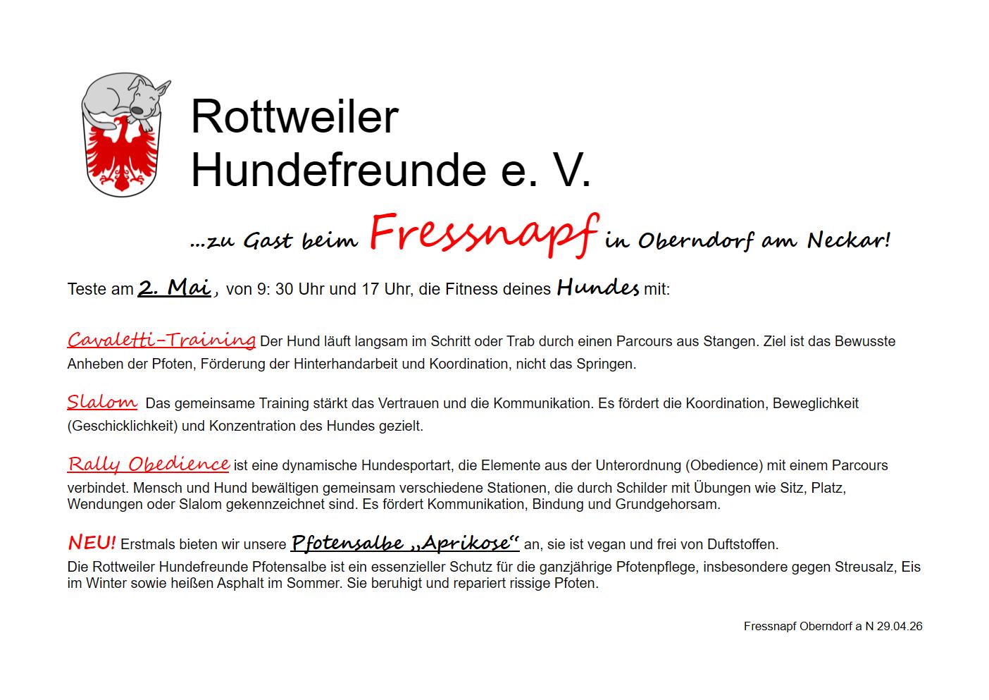 02. Mai Beim Fressnapf in Oberndorf könnt ihr uns mit Spaß und Spiel kennenlernen 🙂